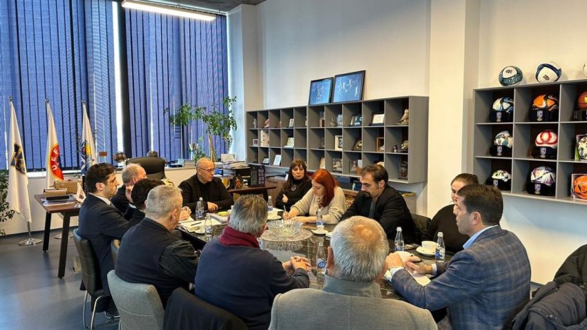 Presidenti i Federatës së Futbollit të Kosovës, Agim Ademi bashkë me anëtarët e KE-së dhe Taulant Hodajn, ka pritur sot në takim anëtarët e Komisionit për Arsim, Shkencë, Teknologji, Inovacion, Kulturë, Rini dhe Sport të Kuvendit të Kosovës, Eliza Hoxha e Vlora Dumoshi si dhe Leart Hoxhën, ekspert nga organizata Demokraci Plus.