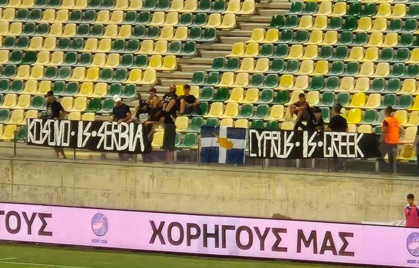 Të hënën mbrëma në Larnaca, Kosova fitoi 4:0 ndaj qipriotëve inferiorë, në kuadër të Ligës C të Ligës së Kombeve. Në mesin e pjesës së parë ndeshja u ndërpre për disa minuta, kur në tribuna u shfaq panoja “Kosova është Serbi”. Vetëm pas largimit të saj ndeshja ka vazhduar.