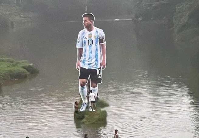 Banorët e Pullavoor, një qytet i vogël në Indi, vendosën një fotografi gjigante të Messit në mes të një lumi për ta nderuar dhe shprehur admirimin e tyre për yllin argjentinas.