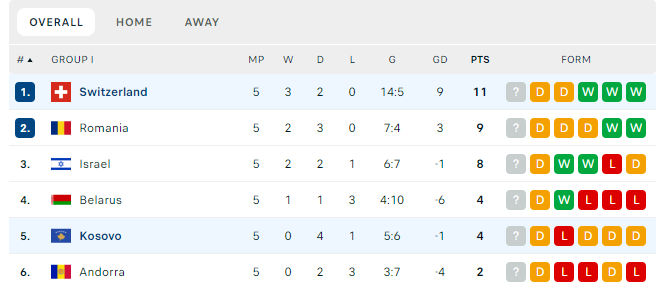 Kosova ka arritur ta marrë një brazim ndaj Zvicrës me rezultat 2:2. Muriqi ishte hero i ndeshjes me dy gola të shënuar. Tabela pas kësaj ndeshjeje nuk ka ndryshuar shumë por janë ngjall shpresat e mëdha për të mbetur në garë për kualifikim.