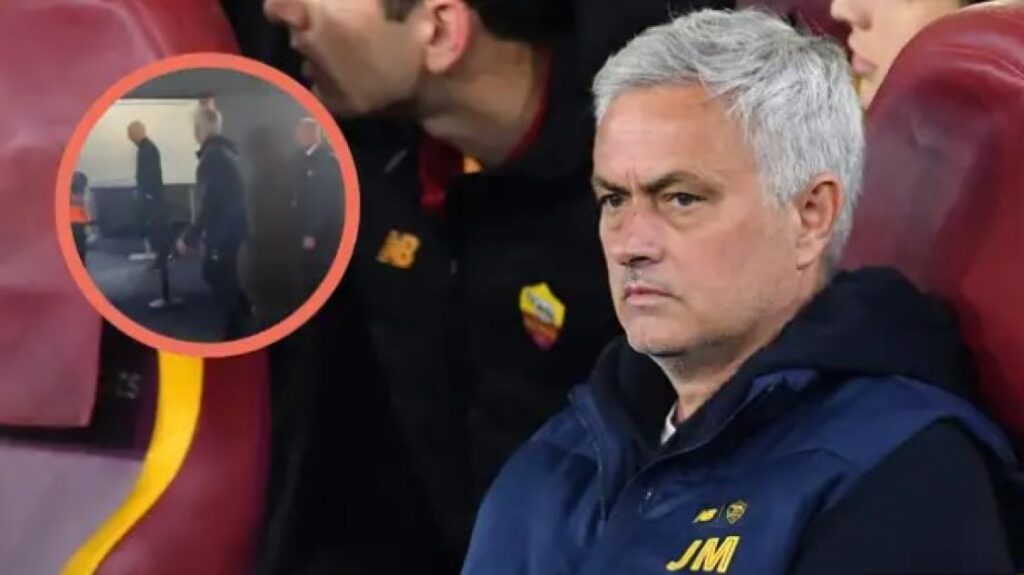 José Mourinho pas ndeshjes kishte një zënkë verbale me Arne Slot, trajnerin e Feyenoord, pasi Roma eliminoi holandezët në çerekfinale të Ligës së Evropës.