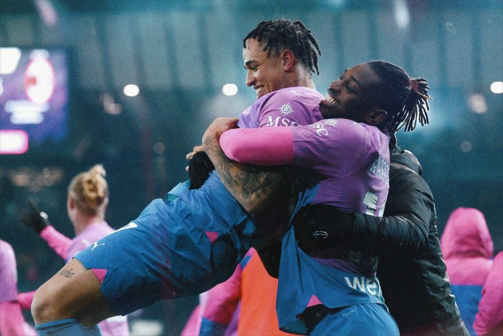 Noah Okafor , sulmuesi i Milanit, foli për DAZN pas fitores 3-2 kundër Udineses.Ishte sulmuesi Okafor që me anë të një goli në fund të ndeshjes i dha fitoren skuadrës së tij.