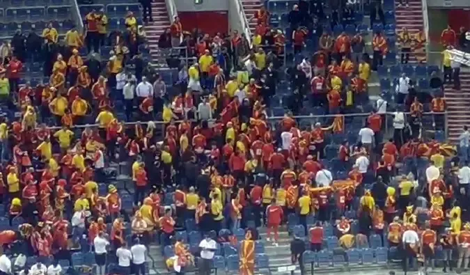 Ndërkohë në pushimin mes dy pjesëve ka ardhur te një përleshje mes tifozëve të Maqedonisë që ishin në palestër. Sipas sajtit maqedonas “ekipa.mk”, fillimisht ka pasur një konflikt verbal e më pas edhe përpjekje për konfrontim fizik. Organizatori ka reaguar duke larguar disa tifozë maqedonas nga arena.