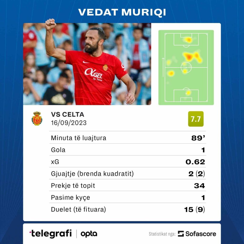 Ai luajti për 89 minuta dhe ishte më i miri te skuadra e tij, Mallorca, duke u vlerësuar nga SofaScore me notën 7.7.